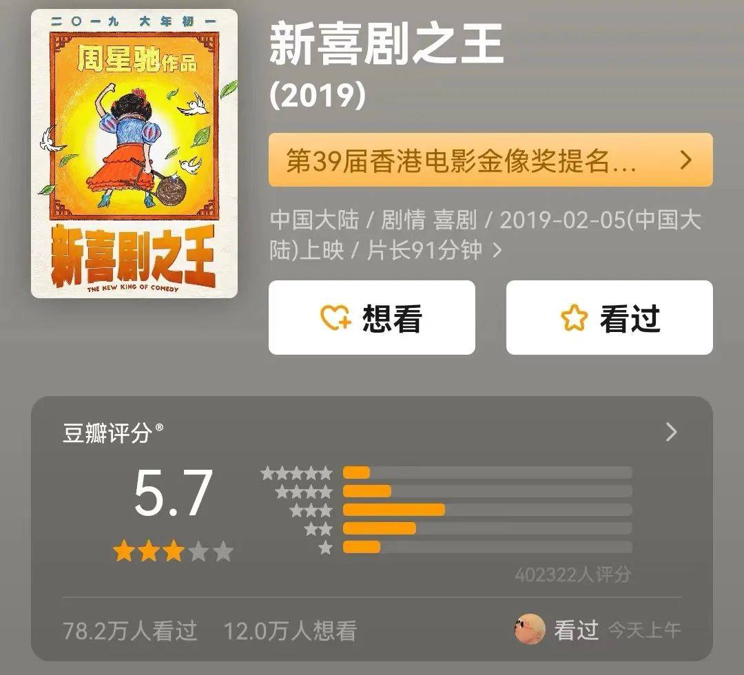 但许多观众看了之后纷纷表示,周星驰这是在炒冷饭、卖情怀,最后《新喜剧之王》只拿到了5.7的分数,很明显与原版的口碑天差地别。
