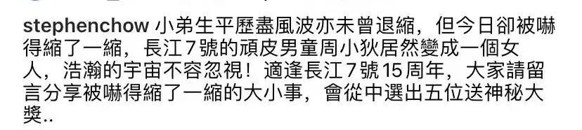 周星驰背对着镜头拿着“七仔”与徐娇合影,上演了一波“回忆杀”,徐娇当年出演《长江七号》后与周星驰公司签约了8年,但后来因为学业的缘故,前往美国读书,因此在娱乐圈中销声匿迹了。