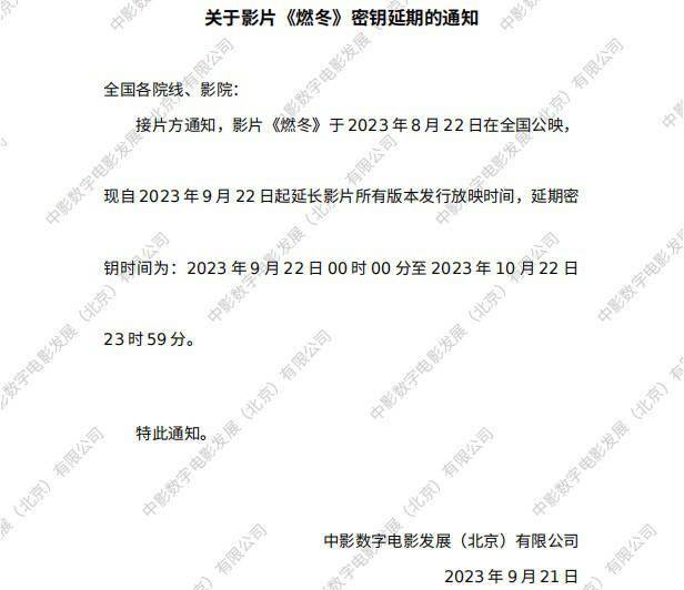 1905电影网讯电影《燃冬》密钥延期,院线上映时间延长至10月22日。