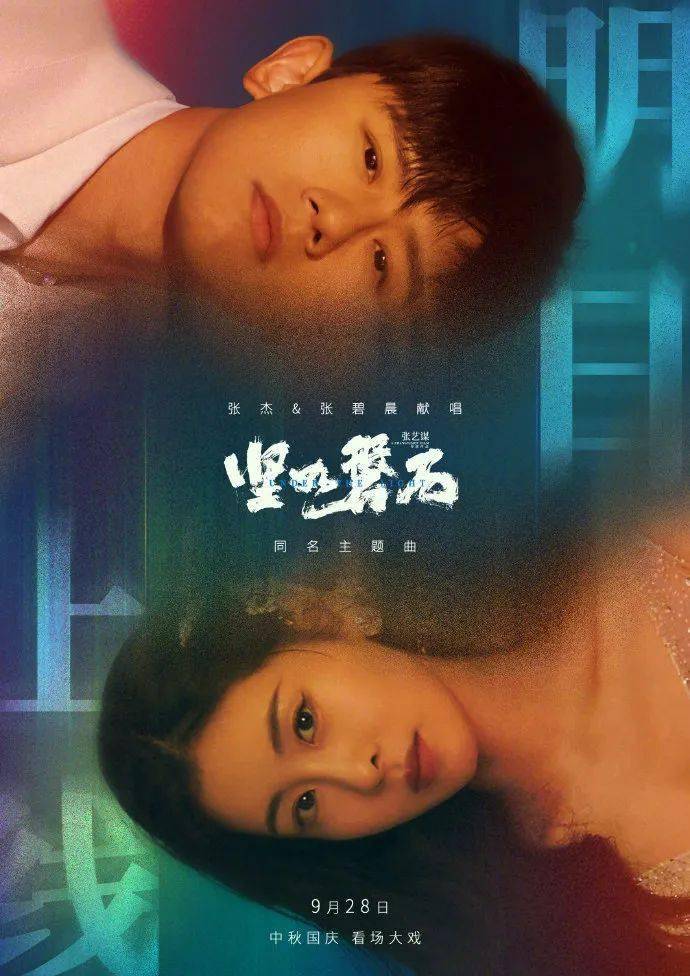 9月21日,由张艺谋执导,演员阵容包括雷佳音、张国立、于和伟、周冬雨、孙艺洲、李乃文、许亚军、田雨、何政军、陈道明、陈冲、王迅主演的电影《坚如磐石》公开同名主题曲预热海报,官宣主题曲演唱者为张杰、张碧晨。这也是两位OST爆款歌手继电影《我不是药神》主题曲《只要平凡》后时隔五年再度合作。影片将于9月28日上映。