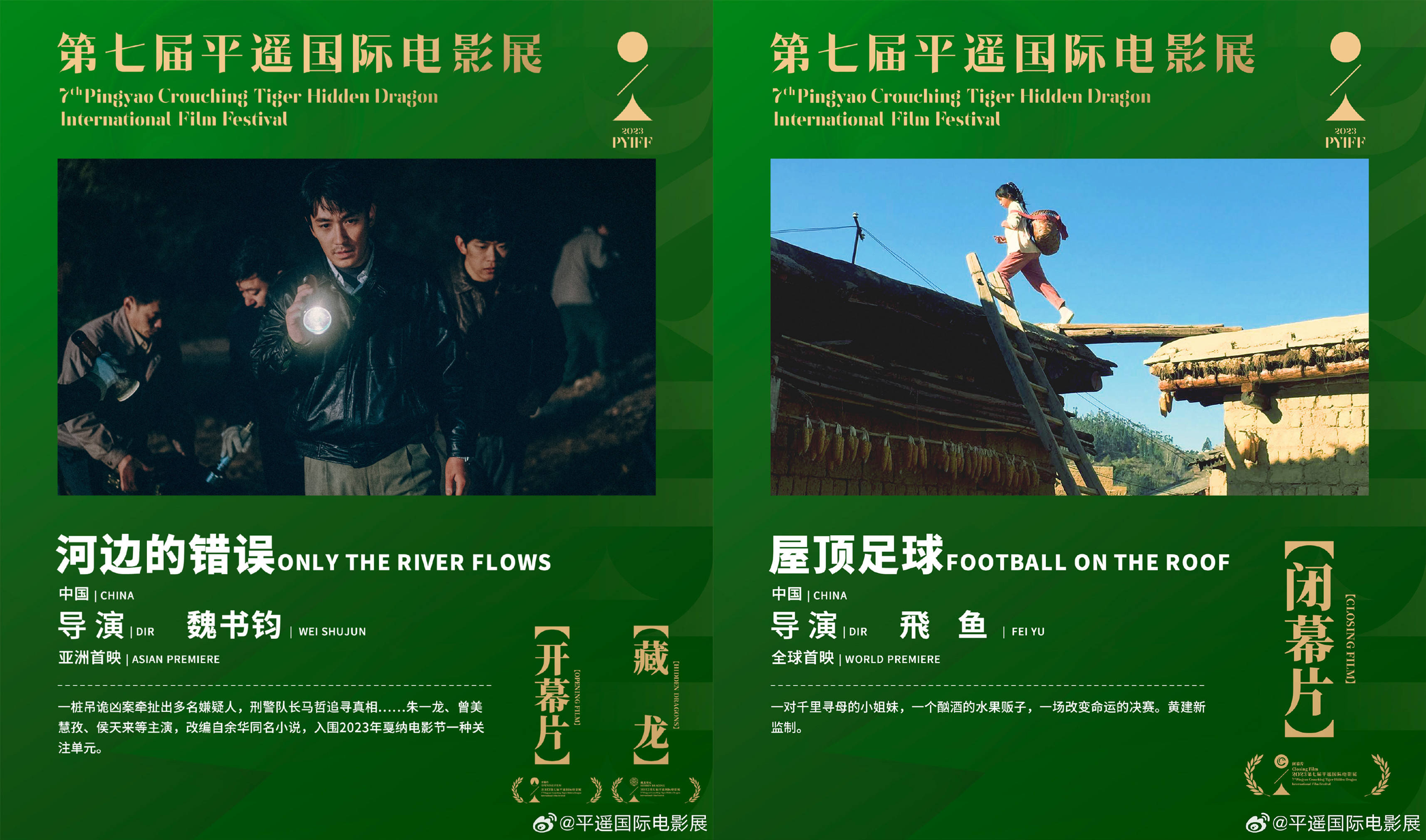 搜狐娱乐讯 2023年第七届平遥国际电影展公布入围片单,魏书钧执导,朱一龙领衔主演的电影《河边的错误》入围“藏龙”单元,并将担任今年平遥电影展的开幕片。闭幕片为飛鱼执导、黄建新监制的影片《屋顶足球/FOOTBALL ON THE ROOF》。