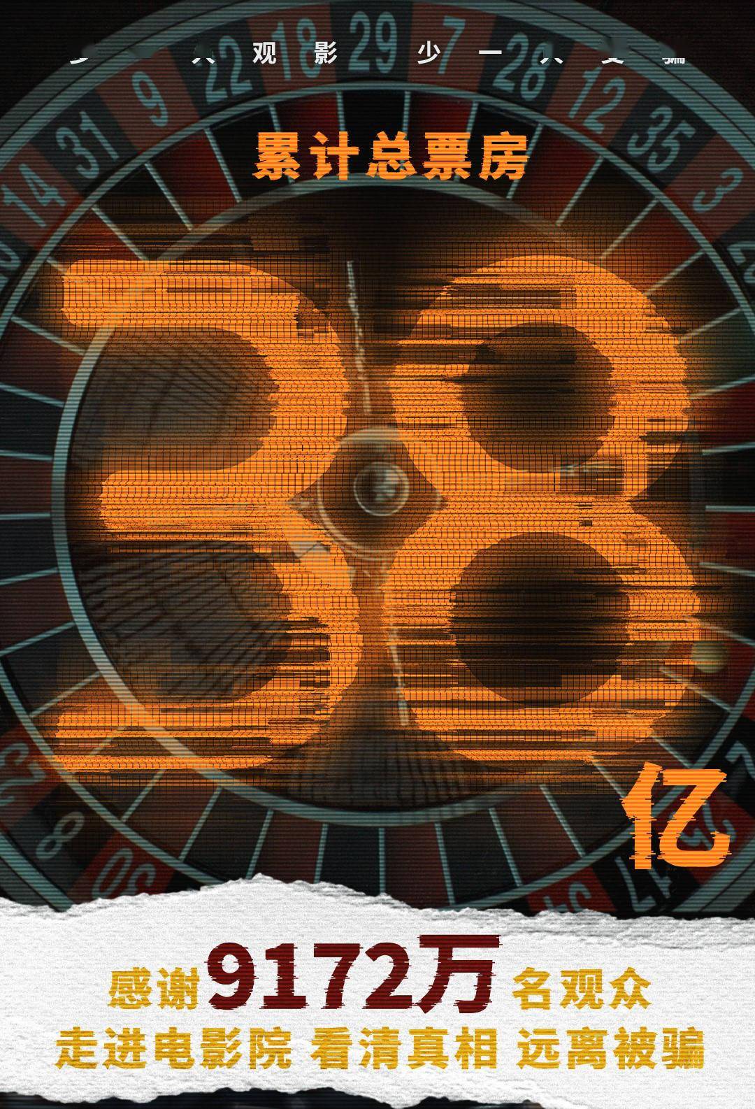 1905电影网讯9月19日,《孤注一掷》票房突破38亿,影片累计观影人次高达9172万。影片斩获2023暑期档票房榜冠军,目前位列2023年度总票房榜第三位,中国影史票房第11名。