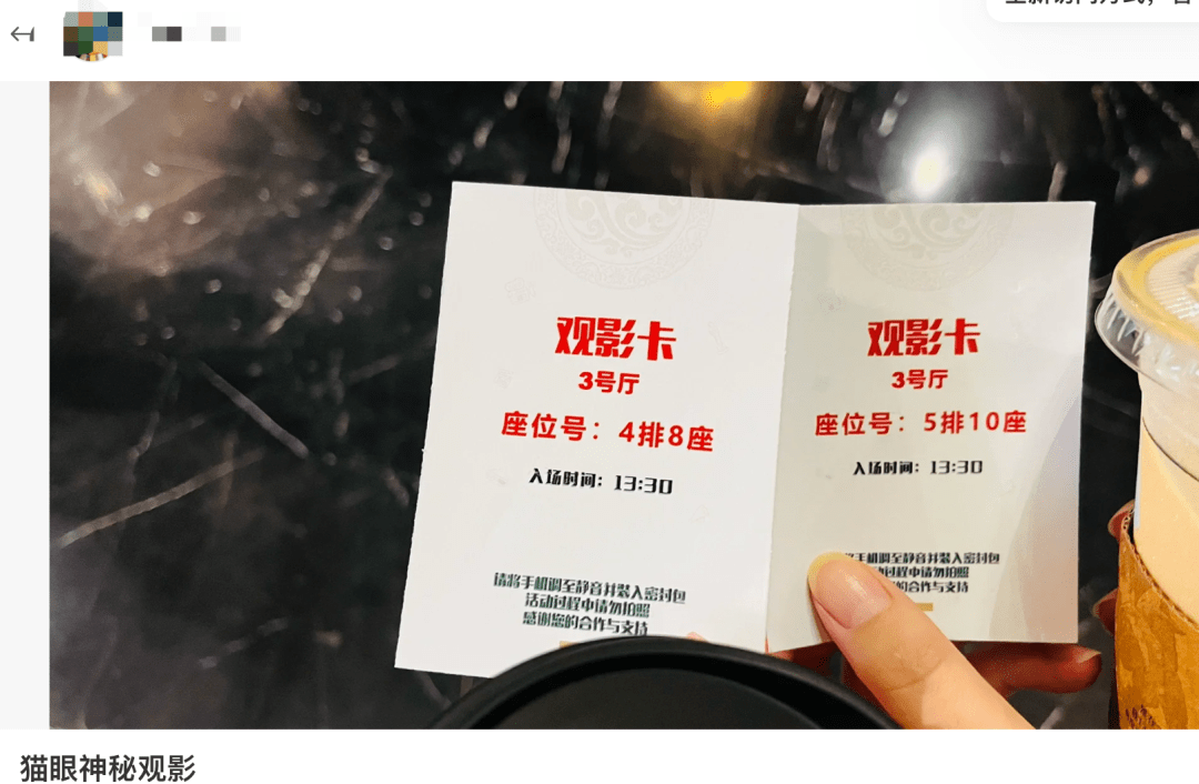 这两者常见的模式分别是以购票平台,根据用户以往的购票经历,不定时向部分用户推送短信。通过短信中的问卷链接,观众们有机会被邀请参加一场神秘观影活动。