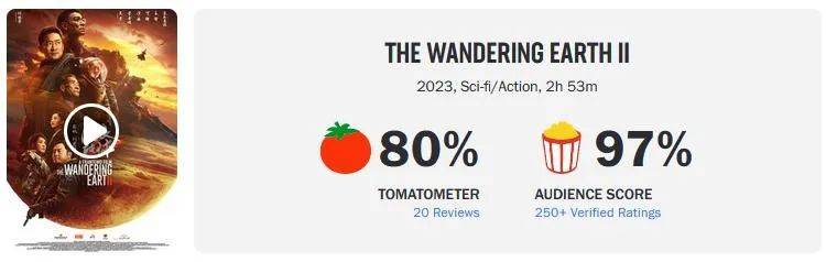 《流浪地球2》不仅在海外票房层面远超预期,海外口碑也取得了不小突破。在北美烂番茄平台上,该片不仅拿到80%的烂番茄指数,爆米花指数更是高达97%,这也意味着影片充分得到了广大海外普通观众的认可。