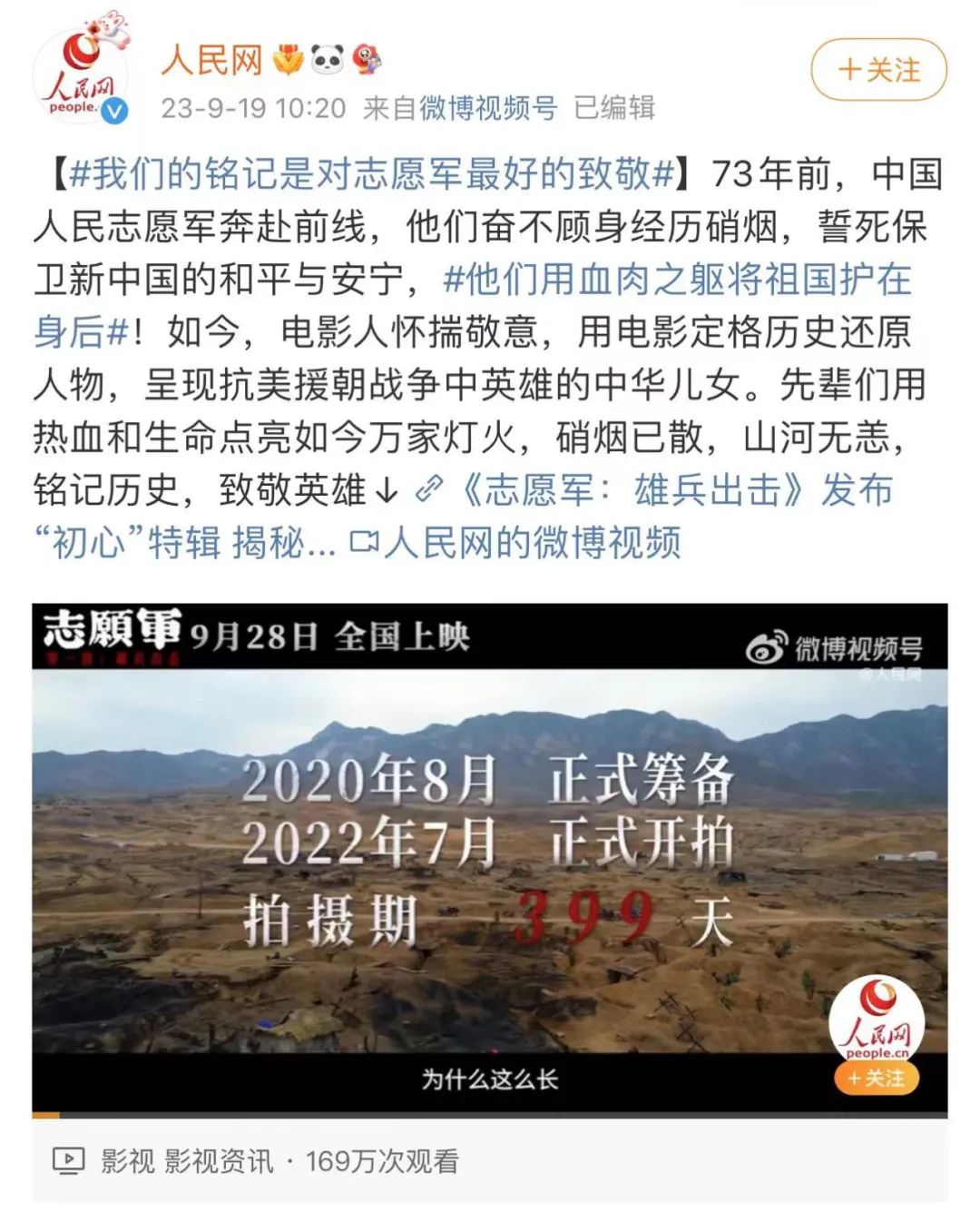 最后就是最诡异的《志愿军》,经过了长达一个月的宣发停摆终于在今天携新物料和具体档期归来。对于这部影片来说,停止宣发的具体原因已经不重要了,重要的是经历了长达一个月的热度空白后该如何补上空缺。