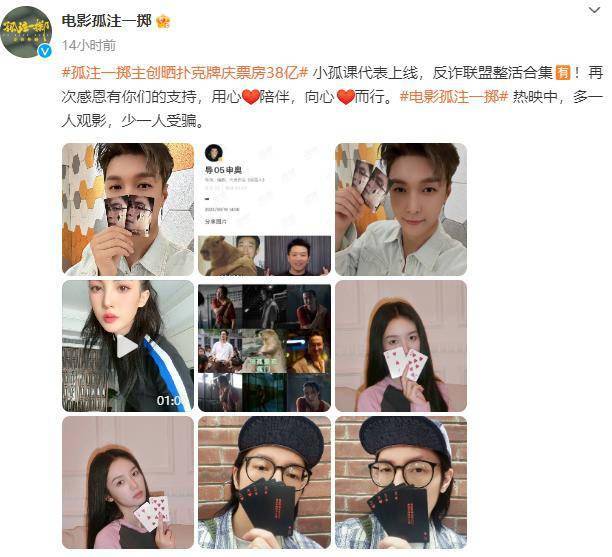 为庆祝《孤注一掷》达成票房38亿成就,主创成员们再发福利,、、晒出扑克牌照片,导演申奥发水豚表情包,照例发剧照,跳舞超魔性。