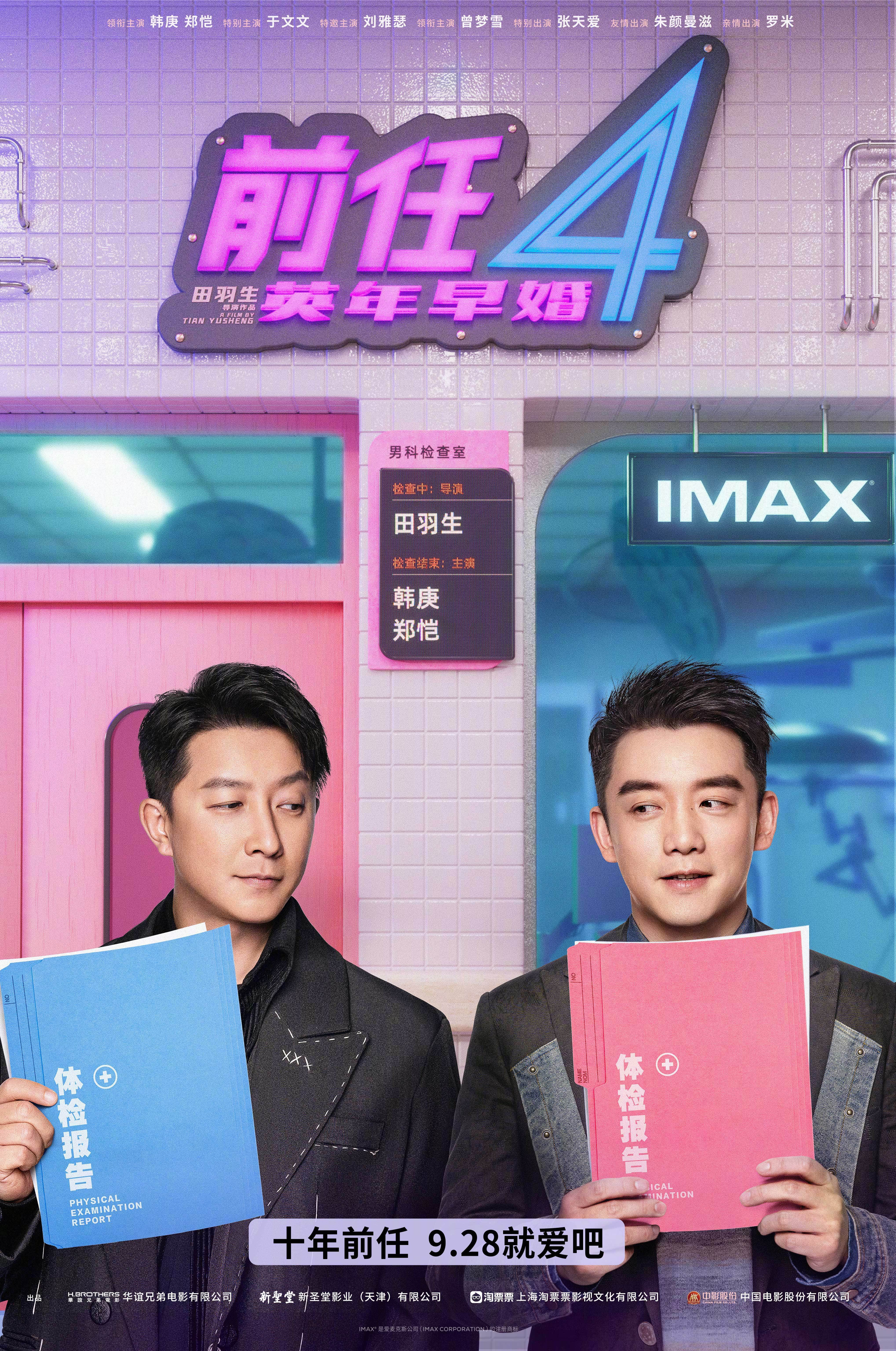 电影《前任4:英年早婚》由田羽生执导,韩庚、郑恺领衔主演,于文文特别主演,刘雅瑟特邀主演,曾梦雪领衔主演,张天爱特别出演,朱颜曼滋友情出演,罗米亲情出演。电影由华谊兄弟电影有限公司、新圣堂影业(天津)有限公司、上海淘票票影视文化有限公司、中国电影股份有限公司出品,将于9月28日国庆档上映。