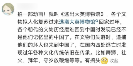 本月初,由博主煎饼果仔、夏天妹妹合作的三集互联网短剧《逃出大英博物馆》在网上爆火,好评如潮。该短剧的灵感来源于网友的一句评论。