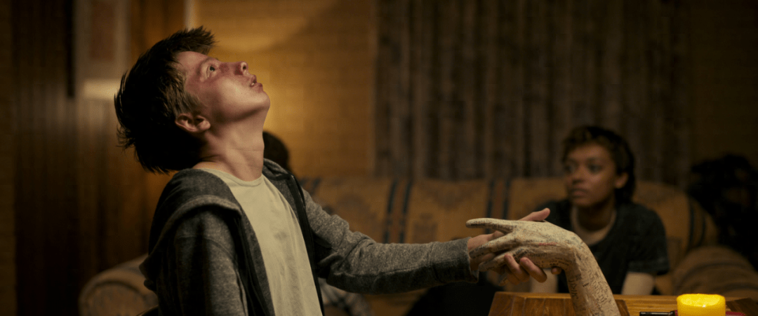 而在呈现莱利被鬼上身,大量的血腥动作之前,我们先看到的,是这帮青少年轮番玩起通灵游戏,在毫无忌惮的狂欢中,消解了恐惧,当然,也卸下了我们观影时的心防。