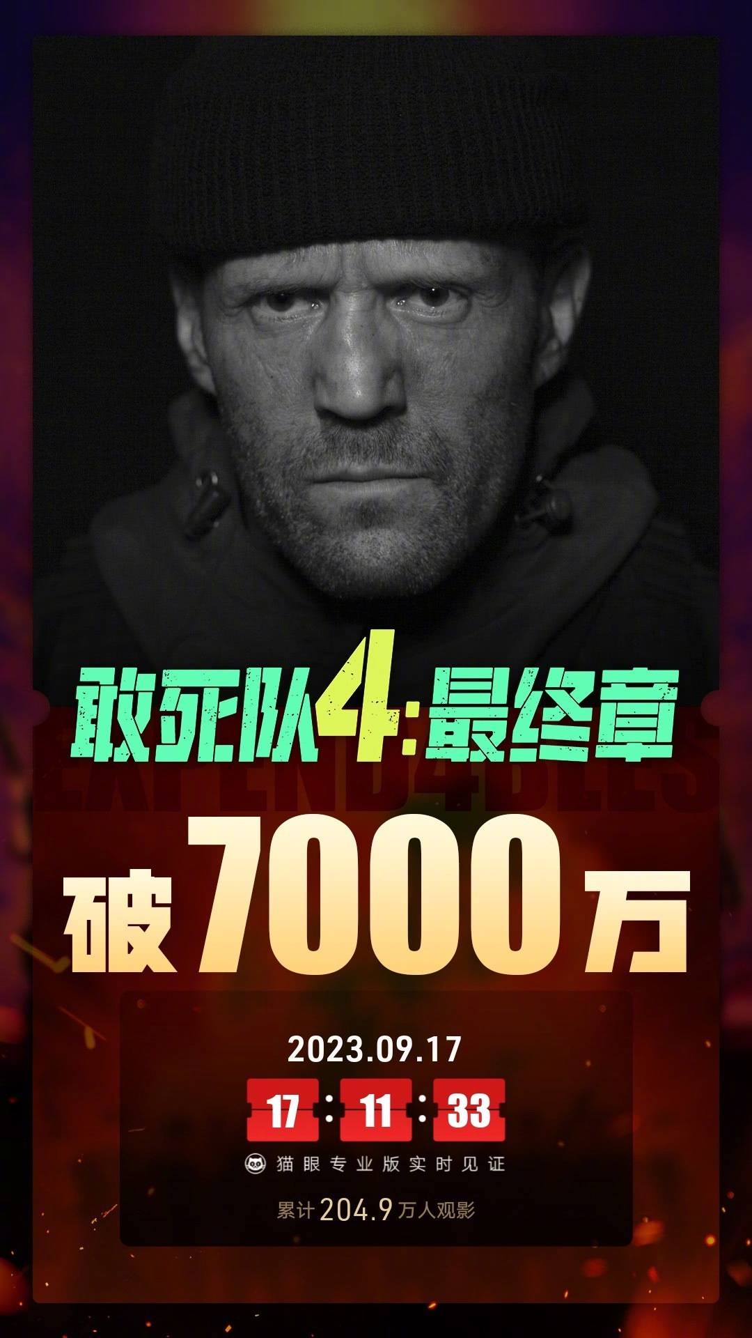热门动作片系列新作《敢死队4:最终章》首周三天收7864.91万居亚,首日2463.8万成绩比九年前的前作《敢死队3》(4664.5万)倒退近半;