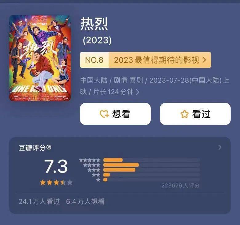 前不久上映的《热烈》收获9亿票房,依旧不上不下。