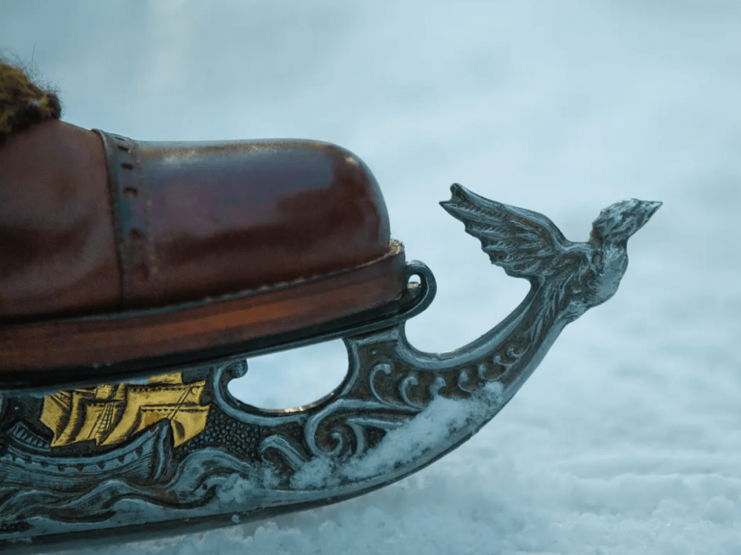 电影《银色溜冰鞋》的制作堪称精良,服化道也独具匠心。电影中所用的溜冰鞋,是道具组按照1885年的古董溜冰鞋复刻的。