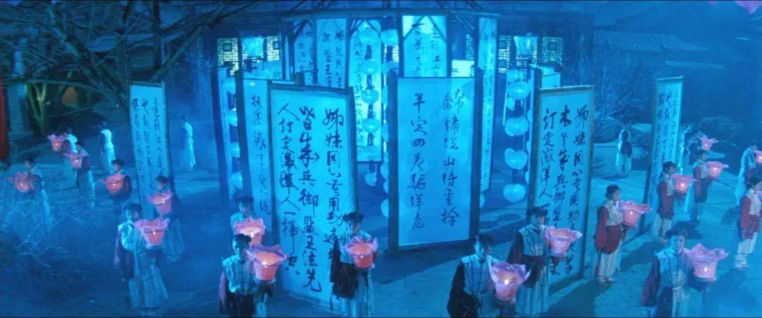 百花阁中布置的舞台,一眼就看出是抄了《黄飞鸿4:王者之风》中红灯照百灯香坛中的天旋地转阵,立着和吊着的屏风,上面写的字都如出一辙。拿两个场景的布置来做对比,不能说非常相似,简直就一模一样。