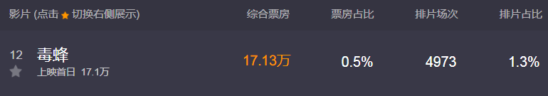 富大龙的《毒蜂》排片太惨淡,首日预售票房仅10万余元,到9月15日下午2点,《毒蜂》的票房也才15.6万,排片占比只有1.3%,少到可以忽略不计。