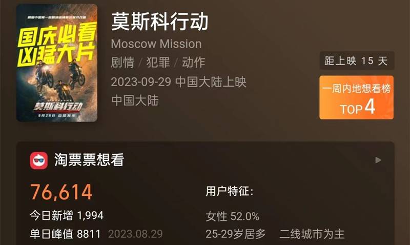除了以上3部影片外,国庆档有望一争票房的,还有《莫斯科行动》和《好像也没那么热血沸腾》。