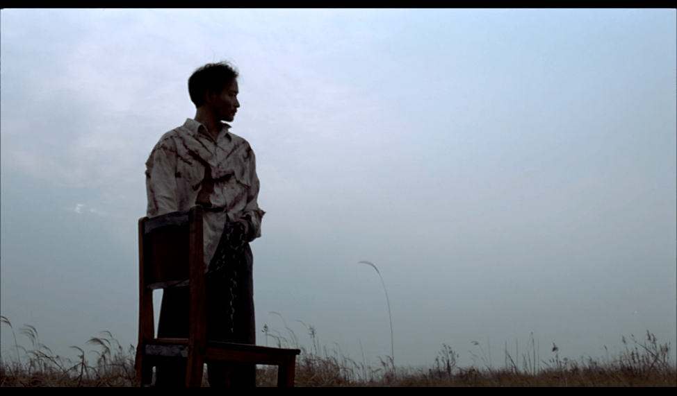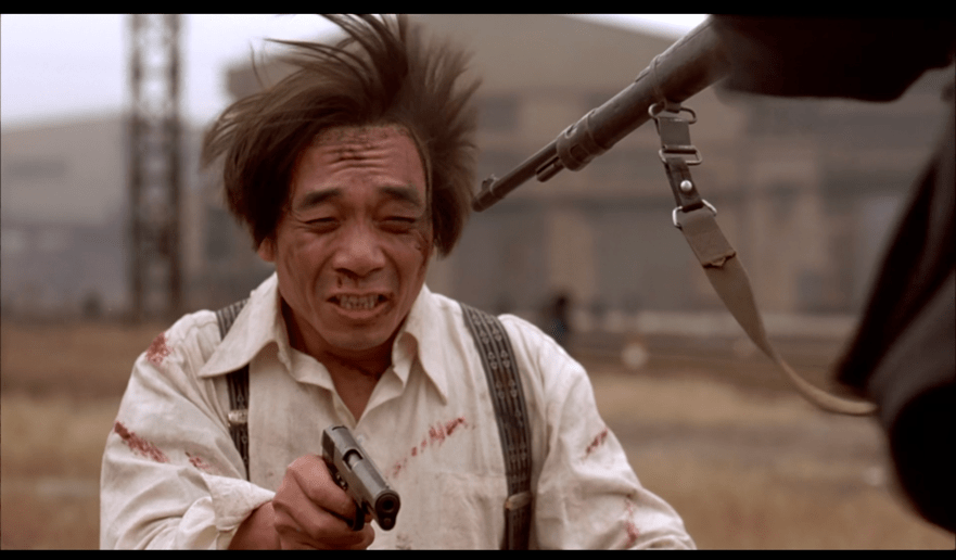 靳的处决是影片的高潮场景。叶大鹰没有给靳安排任何临终台词或过激动作,只是展现他轻轻摇动死刑椅子,镇定地坐上去等待枪决。