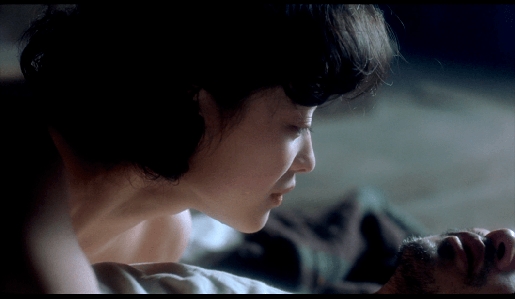 前文说过,靳将秋秋视为亡妻的替代,她的生育也因此象征着靳与亡妻情感的重生与延续。通过交叉剪辑,影片暗示靳在临终时最强烈的内心情感实际是对亡妻的爱。