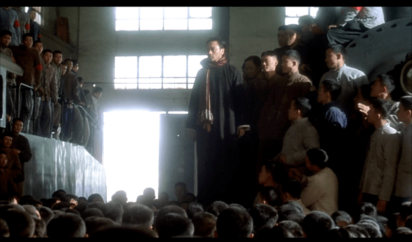 枪响起的一刻,厚重抒情的慢镜头再次出现。靳倒地,禁锢全身的铁链在刺眼的阳光中飞扬而起。静谧中蕴含惊心动魄,内敛中映射辉煌悲壮,这比任何张扬夸大的表达都更能呈现出共产党人的勇气。
