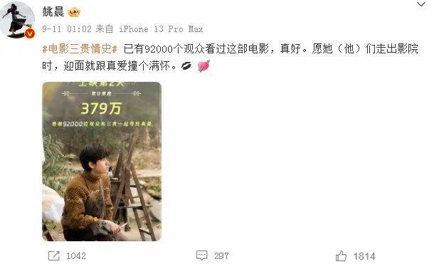 近日,姚晨监制并主演的一部新电影叫《三贵情史》上映了,阵容还不错,除了姚晨外,主演还有胡先熙、周也、周依然,也都算是熟面孔。