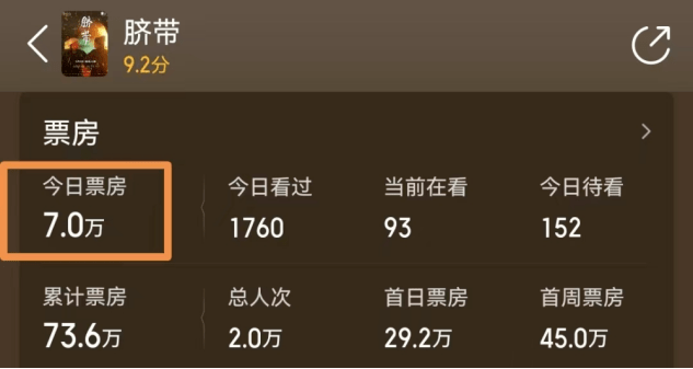 《脐带》上映五日,票房才73.6万,日票房已经跌到7万了。