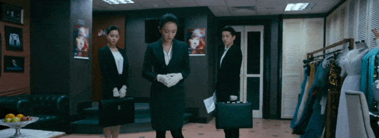 不苟言笑的表情,加上那身干练的职业装,周迅可谓是由内而外地塑造了这个律师形象。