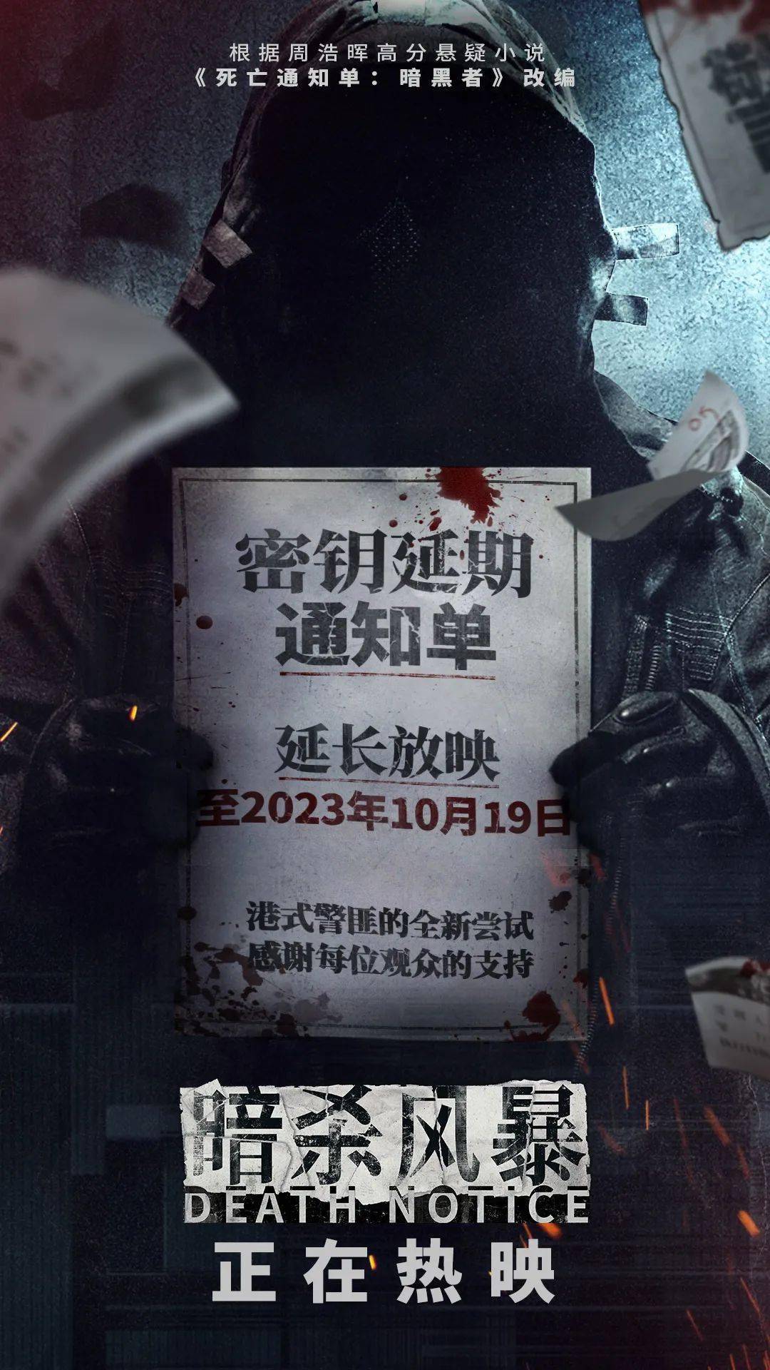 由邱礼涛执导,古天乐、张智霖、吴镇宇、胡杏儿、周秀娜等参演的《暗杀风暴》于8月18日在全国院线上映,目前票房累计超8000万。日前,《暗杀风暴》宣布密钥延期,院线放映时间延长至10月19日。此外,多家网络流媒体平台宣布,将于9月14日上线电影《暗杀风暴》。