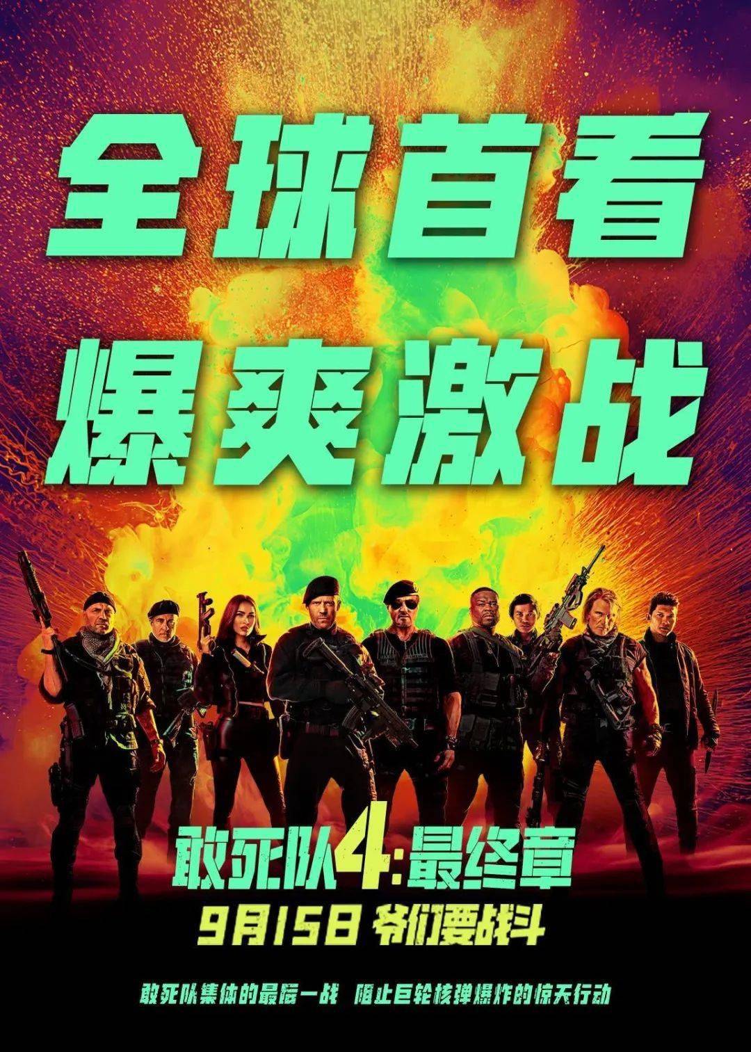 此前令人期待已久的《敢死队4:最终章》即将上映,距离2014年《敢死队3》的上映,已经过去了5年。作为《敢死队》系列的最后一部,其电影中的核心人物史泰龙、施瓦辛格、杰森·斯坦森等硬汉的回归让人无比期待!此次故事讲述了敢死小队最后一次集结,登上外海一艘满载核弹的货轮,开展一场阻止巨轮核弹爆炸的惊天行动。