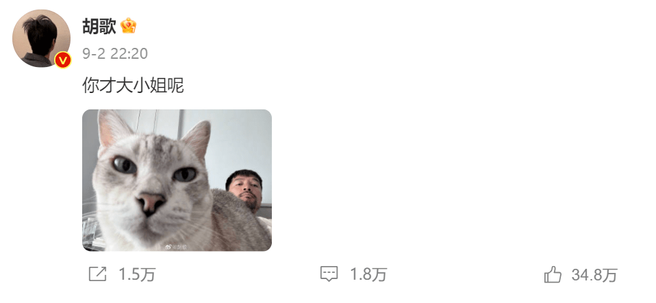 连续几天胡歌都在更新自己的社交平台,有分享美照,也有分享情绪,被网友调侃是“大小姐”,他还亲自发文回应。