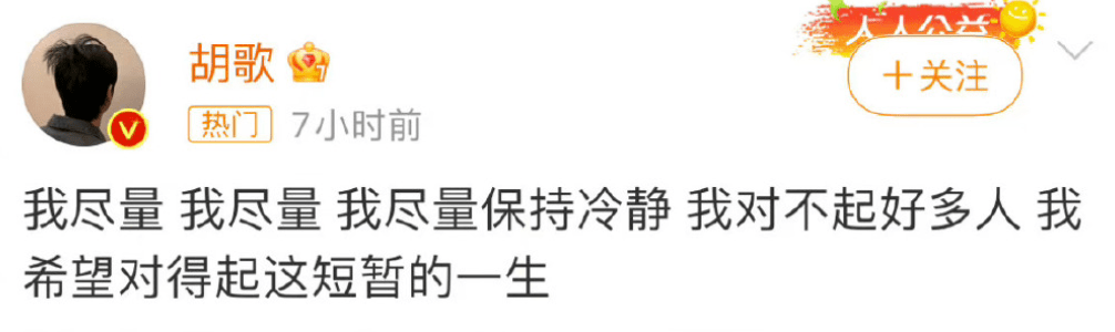 随后他又在8月29日发了一则带着哀伤和消极情绪的动态,当时外界分析那天刚好就是17年前他出车祸的日子,猜测胡歌是否还在为当年助理张冕为保护自己去世而内疚,从而心疼胡歌。