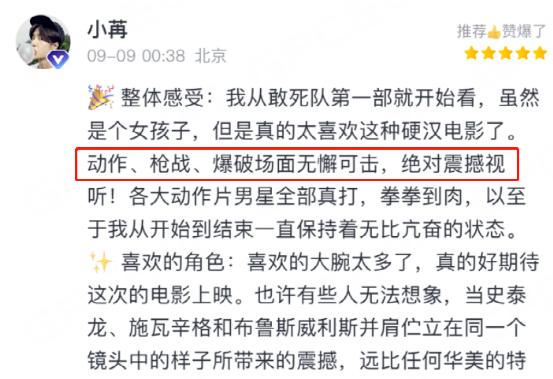没想到,王炸会在这个九月份到来,而《敢死队4》本身的质量,也没有让观众失望。