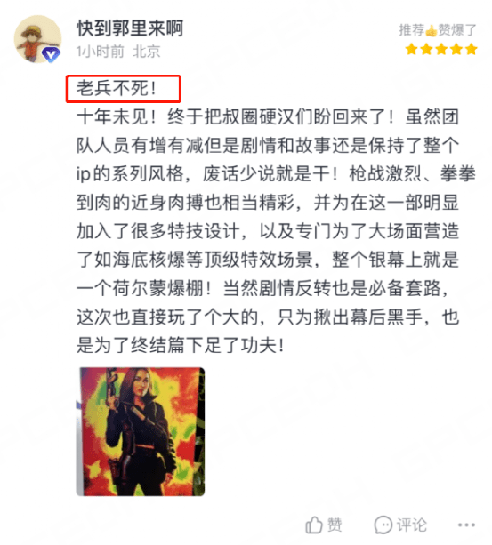 有人看完后,感叹“老兵不死”。