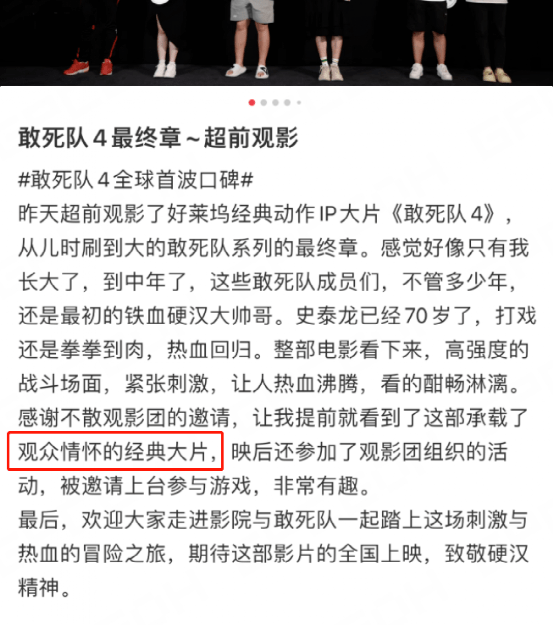 9月8日,《敢死队4》在北京举行了首映礼,我有幸也参与其中,看完这部电影,肾上腺素飙升到了极致,大多数观众跟我感受一样,从这部硬汉电影里,体会到了看其他电影没有的快乐。