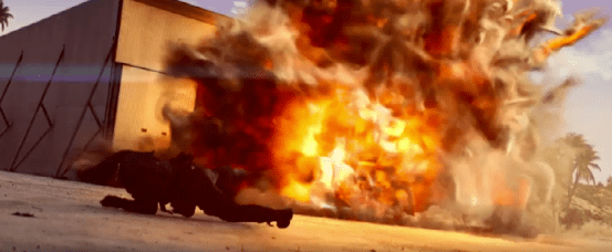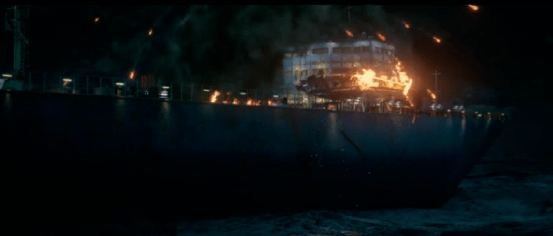 《敢死队4》中有很多“名场面”,不仅仅是郭达森跳到后车开枪击杀司机的经典场景,片中还有轮船侧翻,有炸飞机,有直升机坠落,最后还有核弹爆炸的大场面。