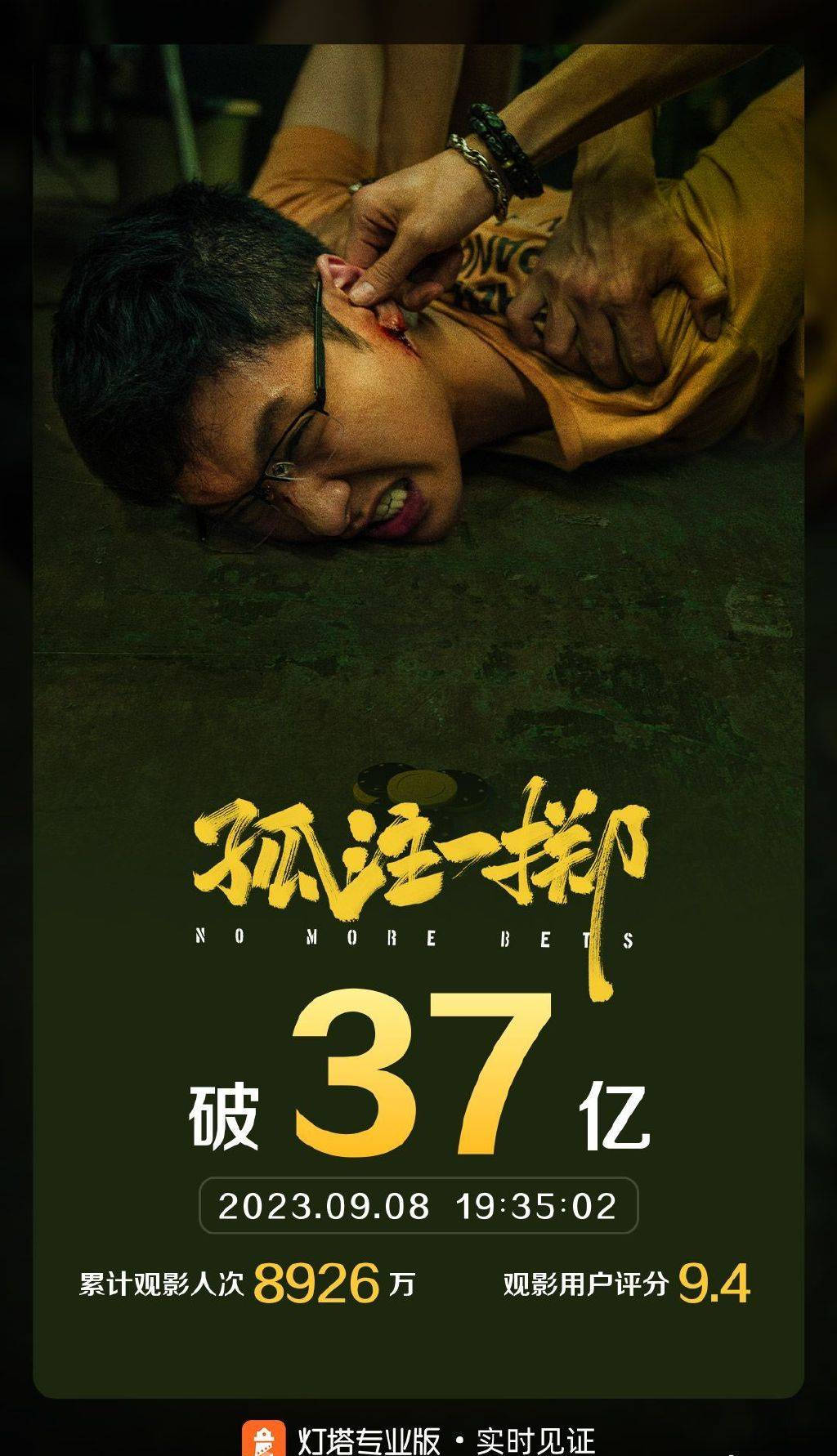 原标题:《孤注一掷》票房破37亿 暂列中国电影票房总榜第11位
