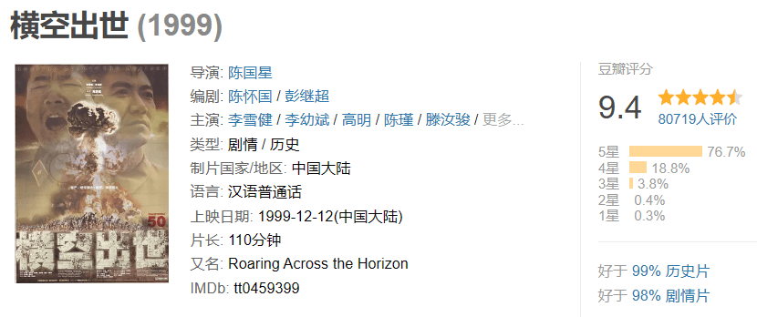 而不断被拿来与它进行对比的,是1999年上映的国产影片《横空出世》。