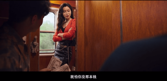 接着镜头切到列车上,文咏珊饰演的真真和葛四饰演的旅客对话,两个人都是相当脸谱化的形象,在长途列车上公然露富,这样的设定是有问题的,不怕被抢还不怕被偷吗?