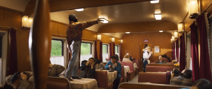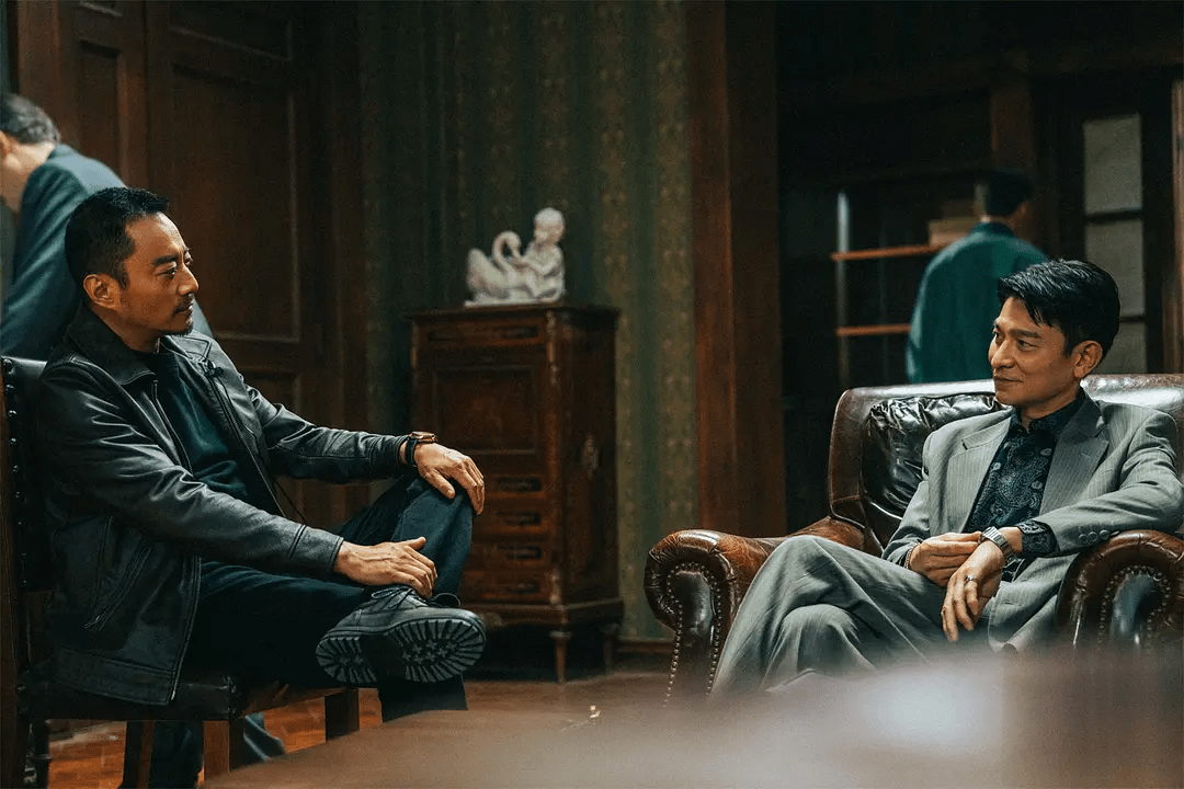 接着闪回到黄轩和刘德华之间的对话,说了“干大的”三个字,后面接上一段爆裂的列车上抢劫戏份,有匪徒对空开枪,有作案工具砸碎窗户,有暴力殴打旅客……真实案件中并没有手枪这样的武器,电影应该是夸张、戏剧化的改编了,但看上去并没有什么惊心动魄,所有的镜头都中规中矩、似曾相识。