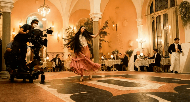 詹姆斯-普莱斯和肖娜-希思设计制作的布景,可以看作是一个银幕奇迹。他们将那个特定时代的视觉概念视为一个沙盒,在沙盒中可以尽情展现各种风格的建筑和装饰——