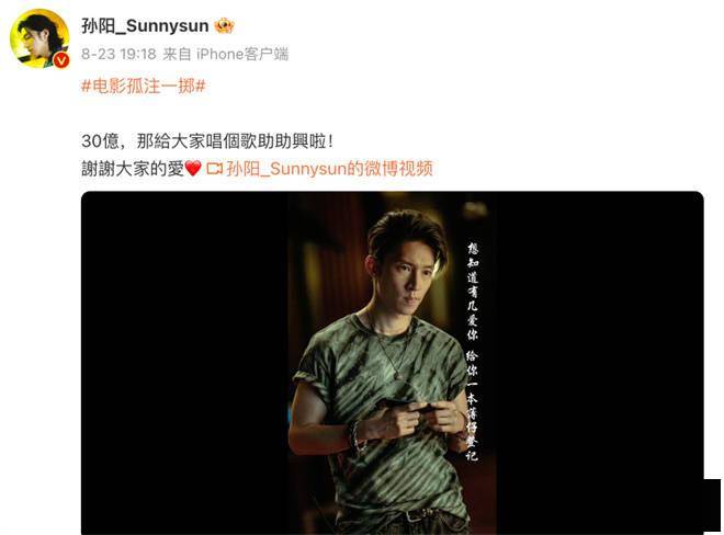 因饰演阿才圈粉无数的孙阳终于在30亿票房时带来一首粤语歌,并和粉丝相约一起向“40亿前进”!