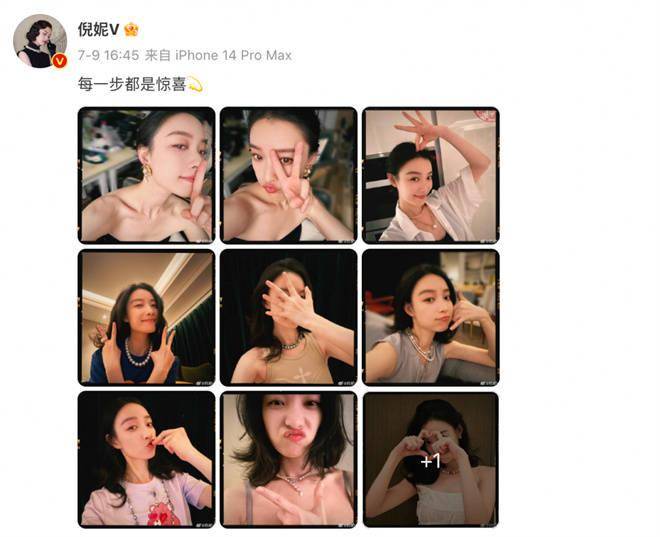 不比内卷比诚意的还有《消失的她》,虽然特别福利不多,但同样诚意满满。倪妮在破30亿时一口气发了30张自拍,用手比出1到30的手势,堪称晒照天花板。