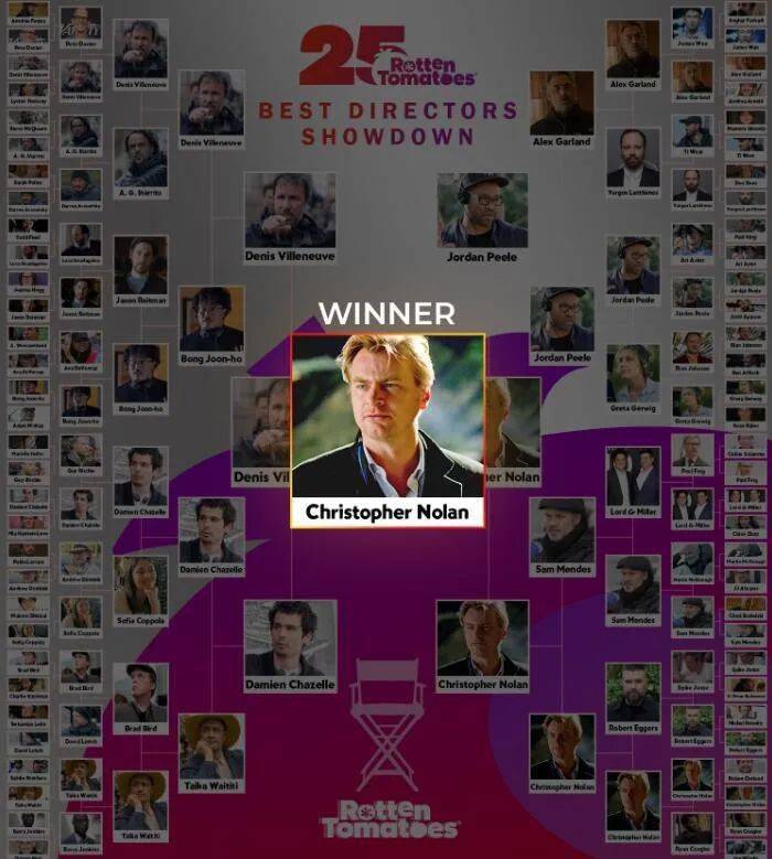 烂番茄网站在这次评选后写道:“诺兰用《黑暗骑士》三部曲重新定义了超级英雄电影,以《盗梦空间》和《星际穿越》等精彩的科幻电影逗乐了我们的大脑,最近又拍出最令人震惊的传记片《奥本海默》,他在64位导演的挑战中脱颖而出。”