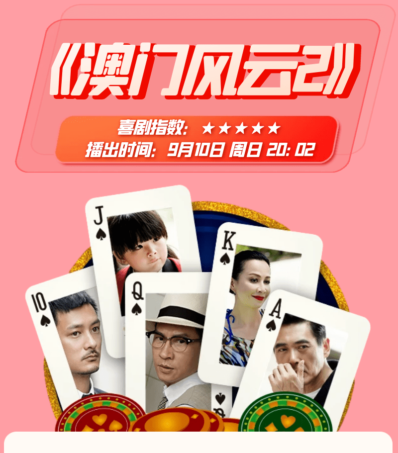 《澳门风云Ⅱ》可谓集结了“世纪豪华阵容”。除延续了第一部“王晶 周润发”的经典赌神组合外,还促成了周润发与张家辉的强强联手,再加之刘嘉玲、胡然、童菲、孟瑶的强势参演,在本部续作中阵容再度华丽升级。而这部“全能喜剧”有笑有泪、有动作有温情、有爱情有亲情,全面展现出了“七星级大娱乐”合家欢元素。