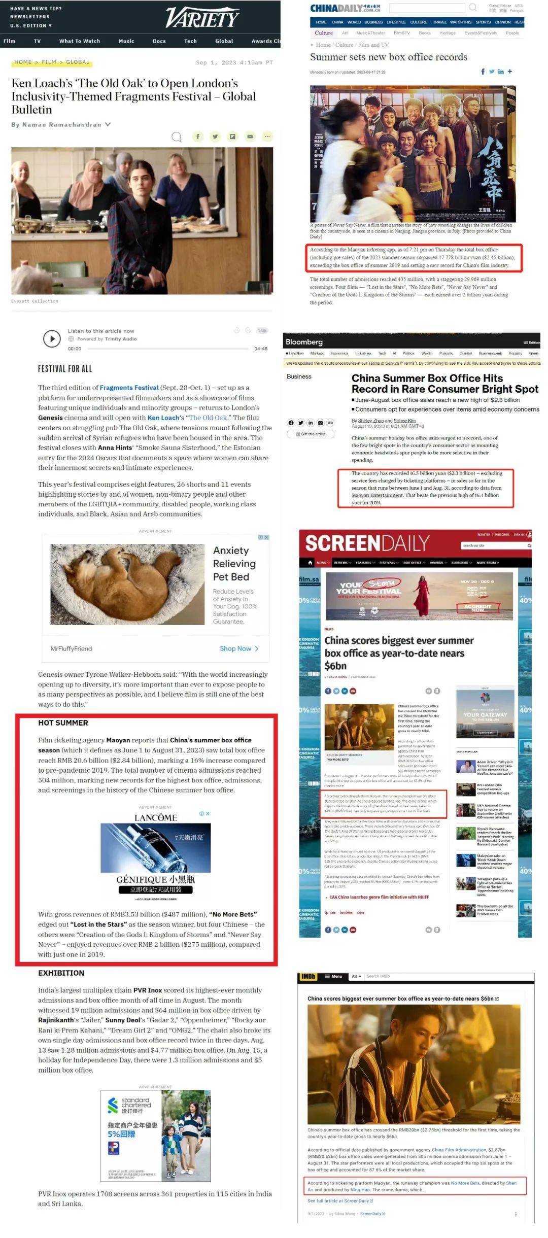 产业链上游的集体助力,也在驱动消费市场持续活跃。档期内,市场围绕两性议题、电信诈骗等热点话题的讨论此起彼伏,《报告》数据显示,《消失的她》《孤注一掷》累计产出的抖音TOP3热点话题达75个,社会议题引发的市场情绪共鸣,也是推动两部影片票房持续爆发的关键所在。与之相伴,群体消费助推下,国内电影市场高潮迭起甚至引得海外市场频频关注,不少外媒都通过援引猫眼的档期数据,报道中国电影在国内暑期档的盛况。不难看出,猫眼的平台能力已然得到国际市场的认同,成为海外媒体关注国内优秀电影及市场表现的窗口。
