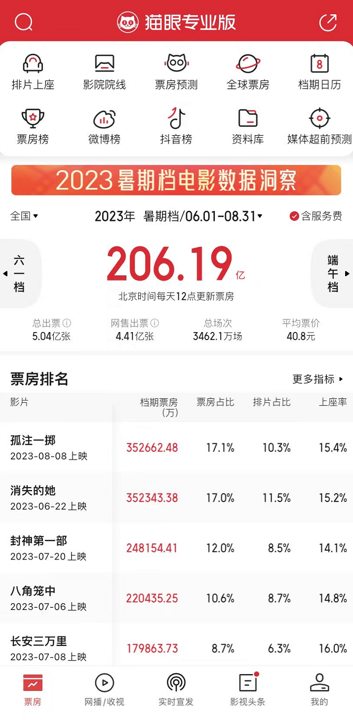在这背后,猫眼数据体系支撑下的宣发产品走向精细化,也是助推今年暑期档全面爆发的重要因素。平台能力带动互联网宣发升级,助推更多影片与核心消费群精准对接,也让市场看到优质内容在长线档期的爆发潜能,在激活档期的同时,为行业回暖和良性发展提供更多有力支点。