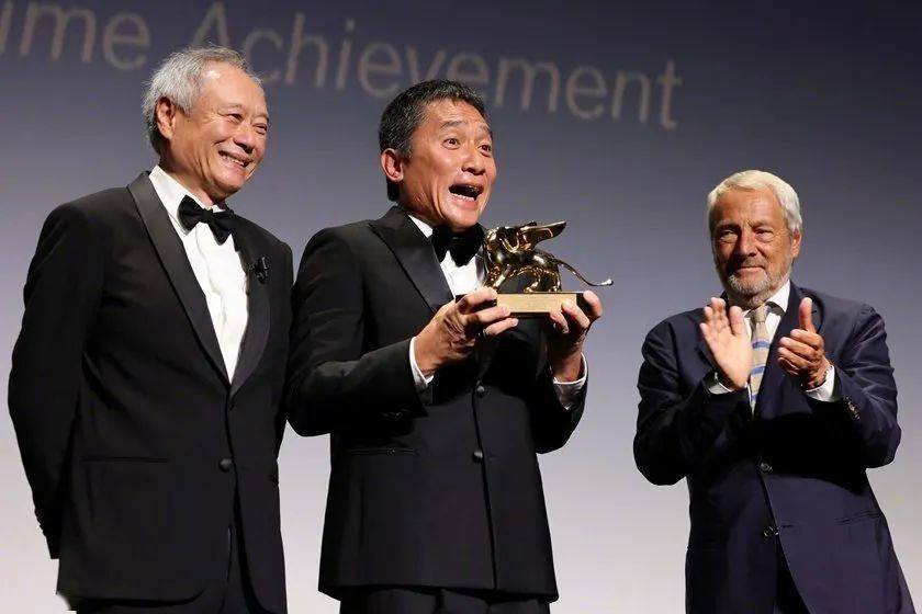 当地时间9月2日,现年61岁的中国香港演员梁朝伟现身第80届威尼斯国际电影节领取终身成就奖,著名导演李安为其颁奖。而其也是历史上第三位获得终身成就金狮奖的华语电影人。