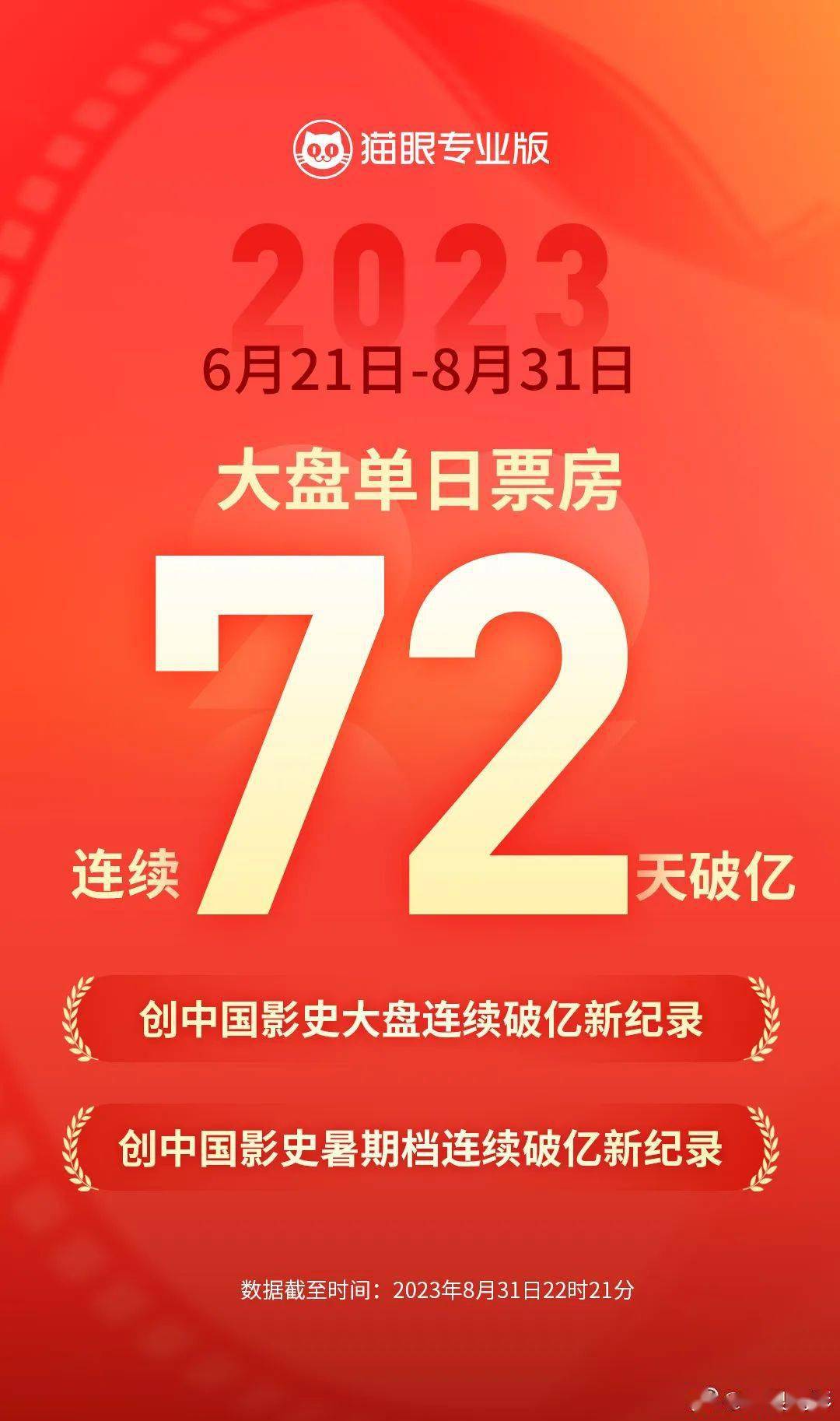 观影人次更是以超5.04亿的数字,成为暑期档最高观影人次的纪录。除此之外,全国单日票房已连续72天破亿,创下中国影史大盘连续破亿新纪录。