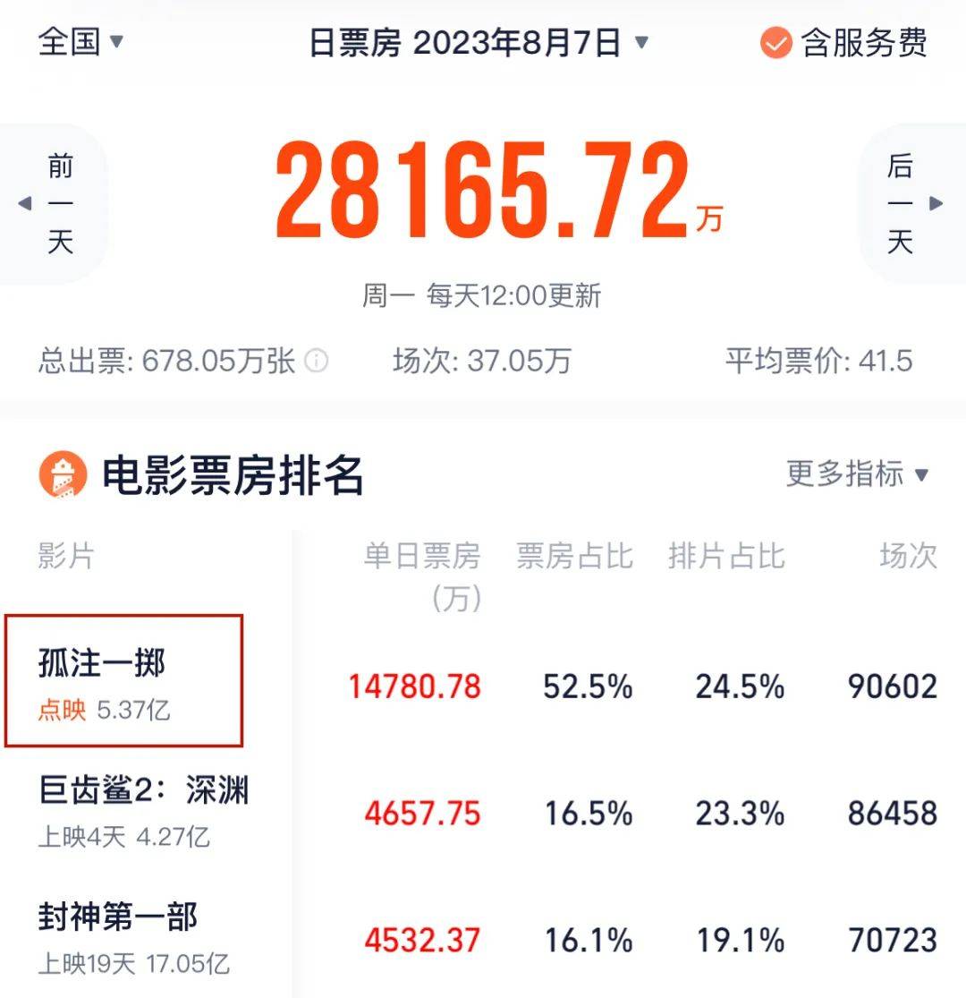 《孤注一掷》点映票房已超5亿