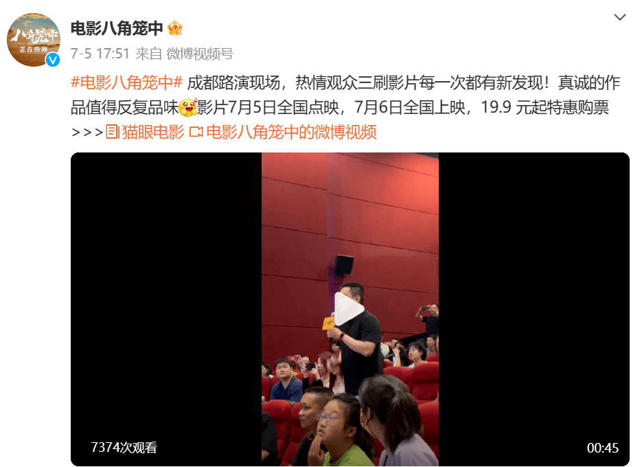 7月5日《八角笼中》点映中,已有观众三刷