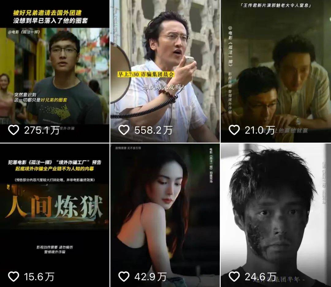 《孤注一掷》映前物料的抖音热度起势极强