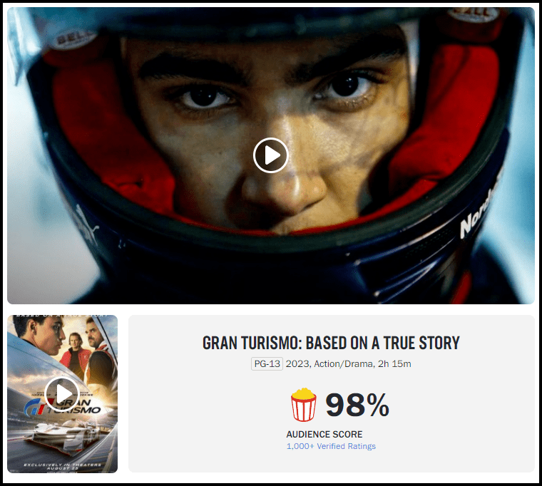 不仅收获烂番茄爆米花度98%逆天口碑,媒体力赞“有史以来最棒的赛车电影之一”。
